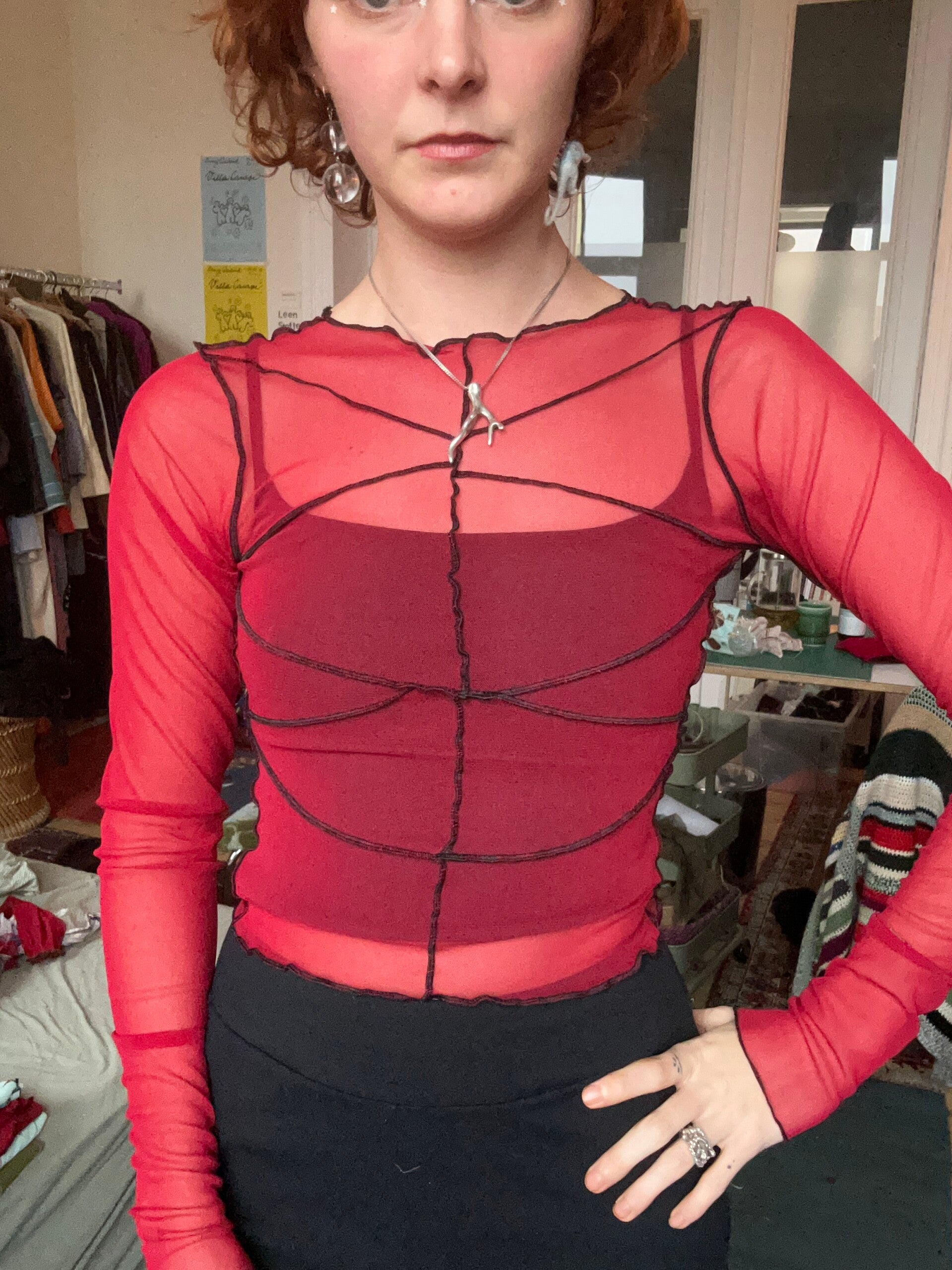 SIZE S - MESH LONGSLEEVE - black seams - red
